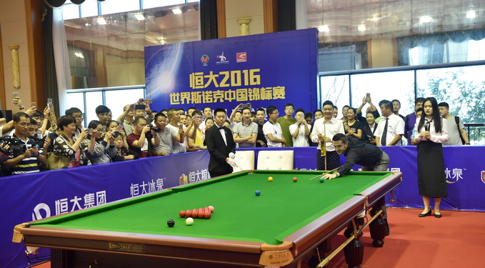 9月17日,“恒大2016世界斯诺克中国锦标赛”新闻发布会在江苏启东恒大海上威尼斯酒店举行。现世界排名第一的塞尔比和中国斯诺克领军人物丁俊晖作为赛事推广大使参加了发布会,比赛将于今年11月1- 5日在广州体育馆正式开赛。